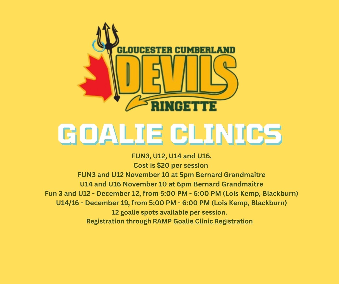 GCRA is excited to be offering goalie clinics to FUN3, U12, U14 and U16.